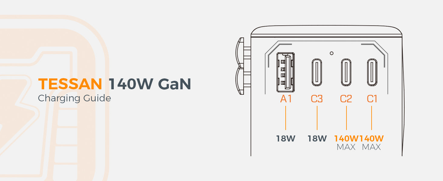 TESSAN - 140W Universal Travel Adapter GaN Charger with USB-C & USB Ports