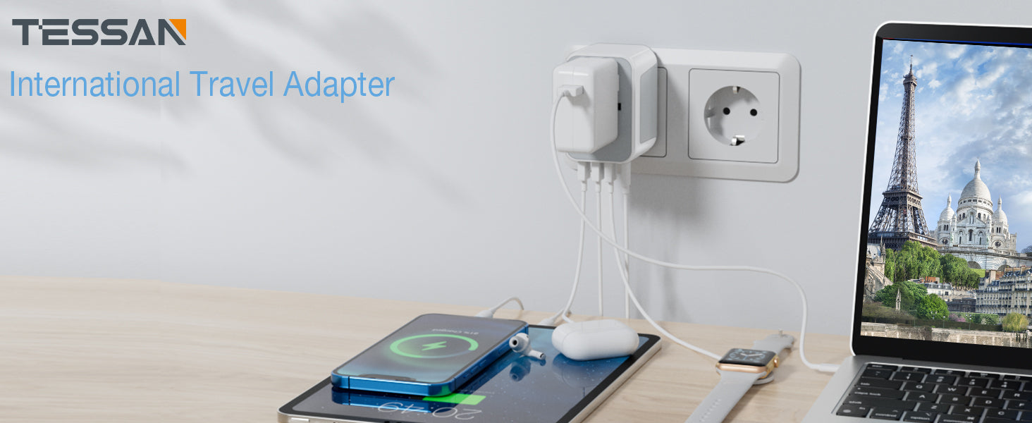 TESSAN - 17W Universal Travel Adapter with 1 USB C & 3 USB A Ports