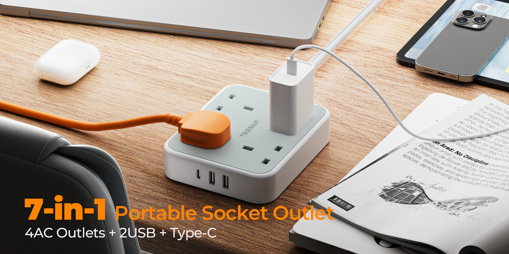 • Widely Space Socket: A sufficiently wide space socket is suitable for large outlet plugs, and will not block each other. 4 way plugs and 3 USB slots in all. It can charge total 7 devices simultaneously and satisfying your daily needs. Max output power up to 3250W (250V / 13A)