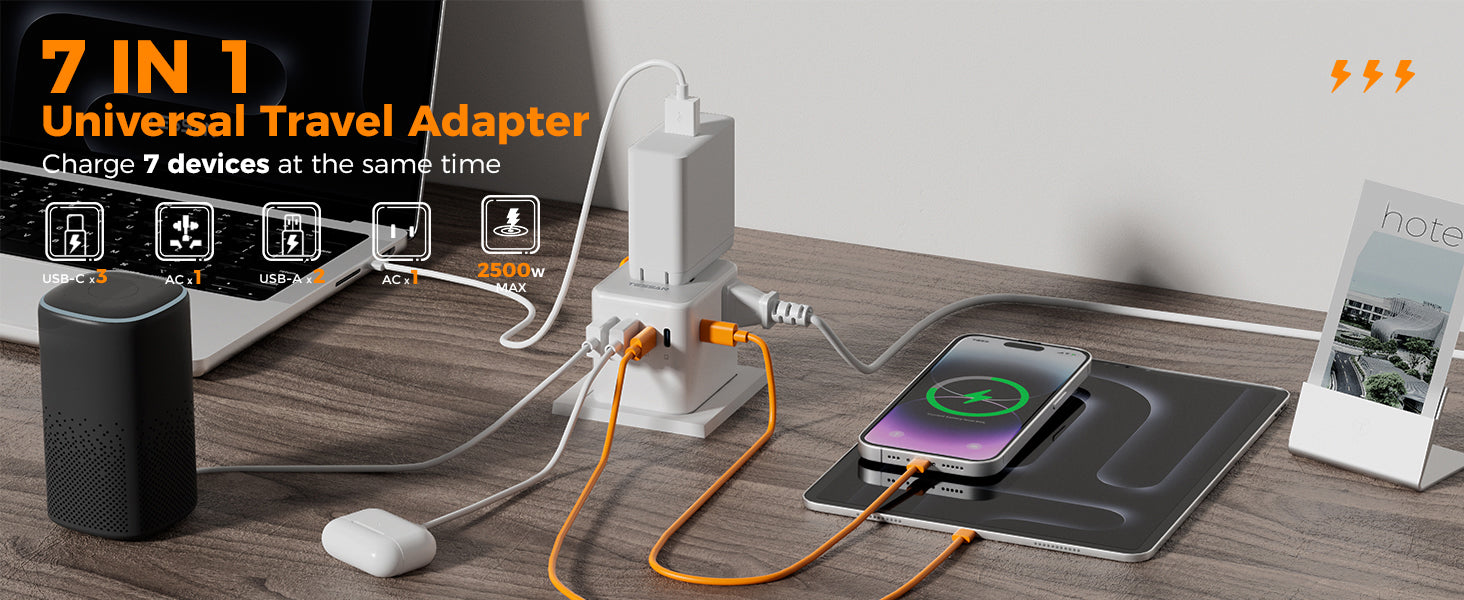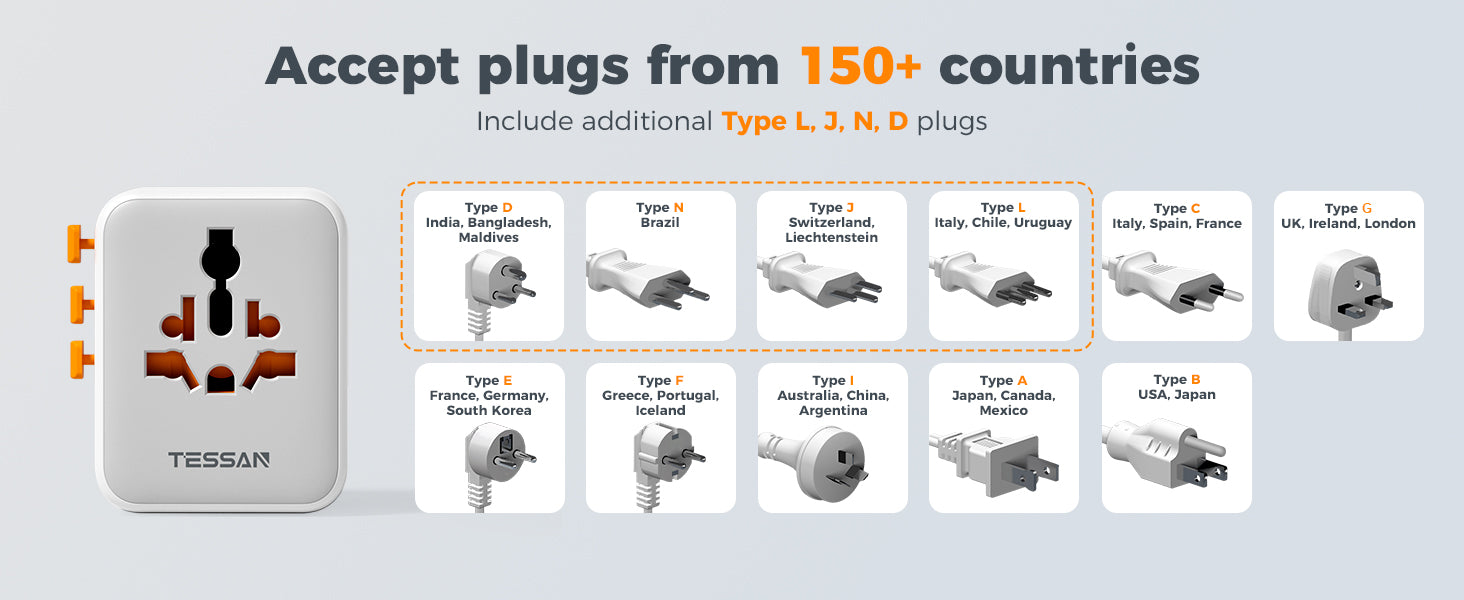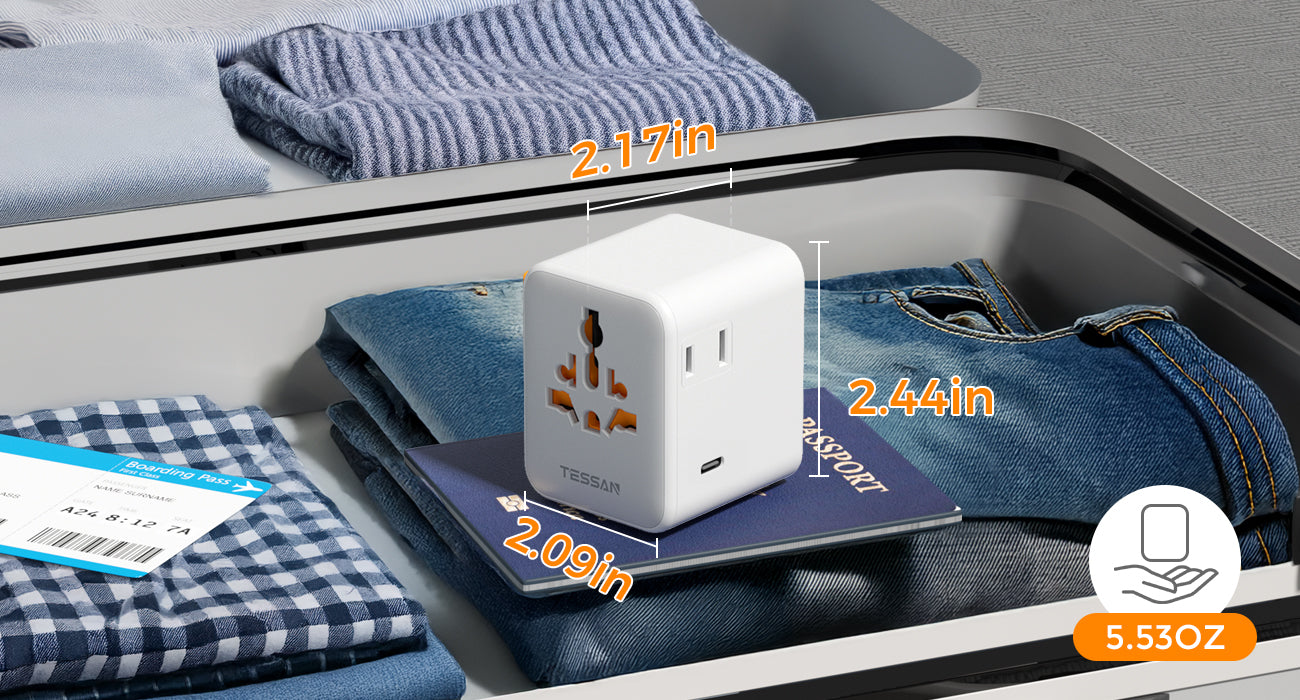 TESSAN - Universal 28W International Travel Adapter with 2 USB A & 3 C Ports