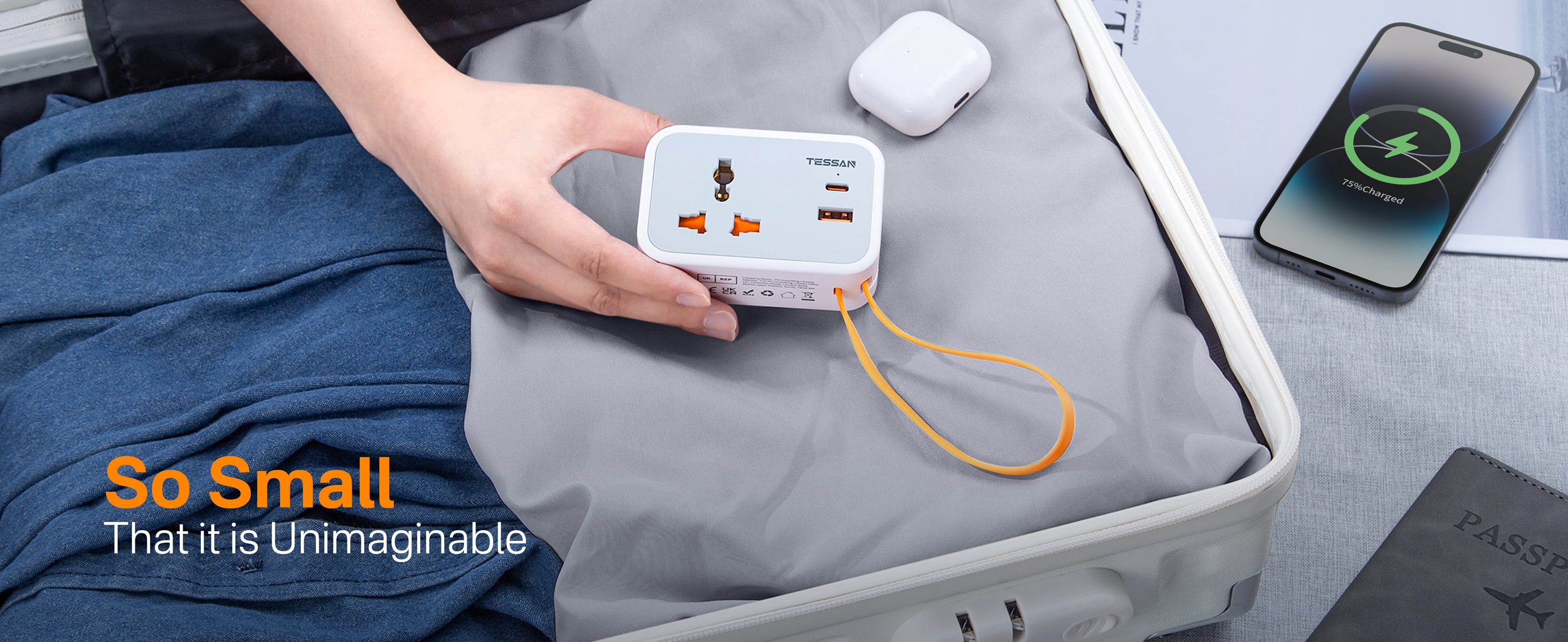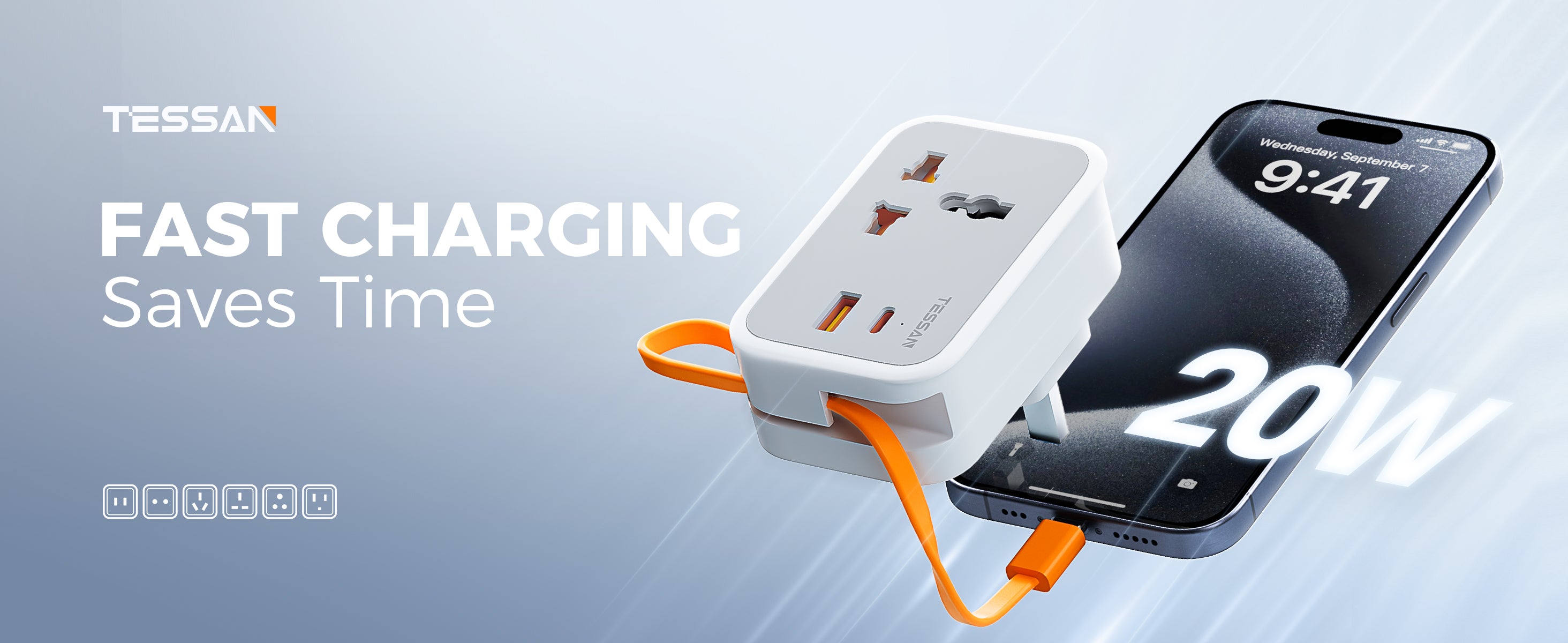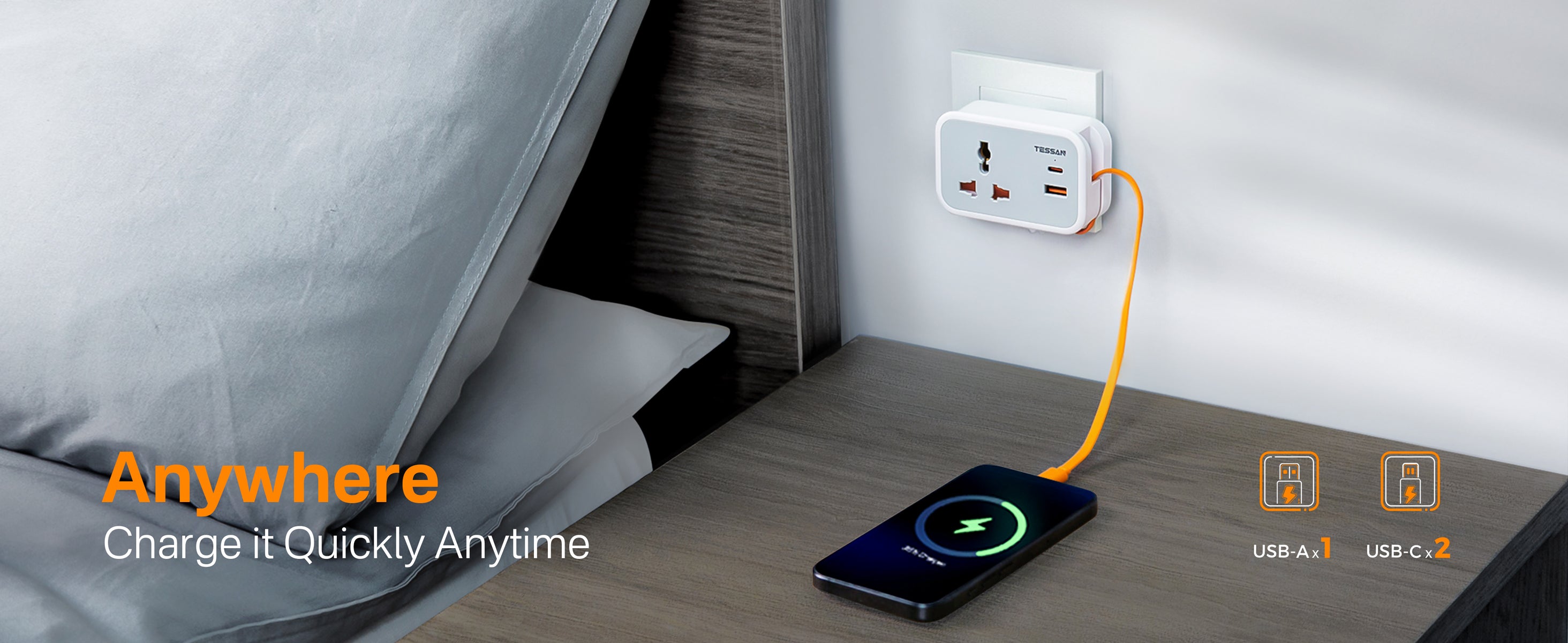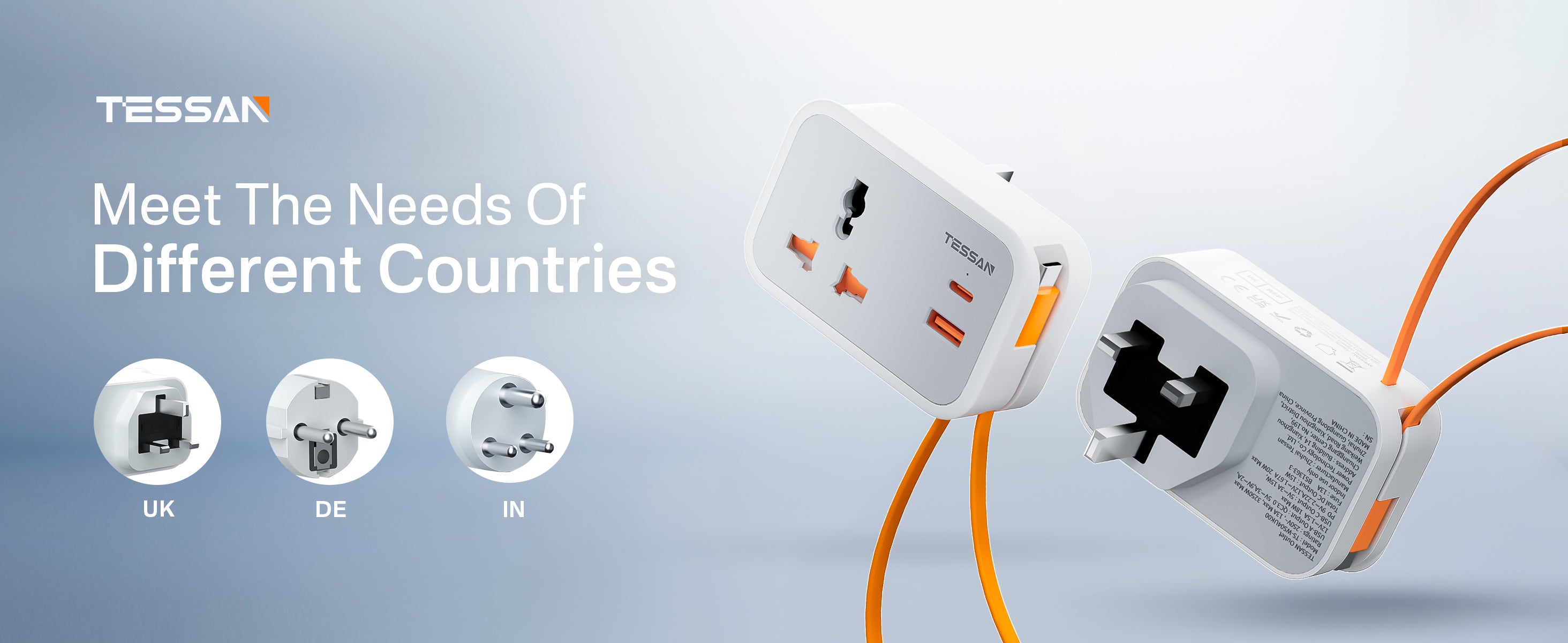 TESSAN - Wall Plug Socket Extender with USB-C Cable Universal Gang and 2 USB Ports