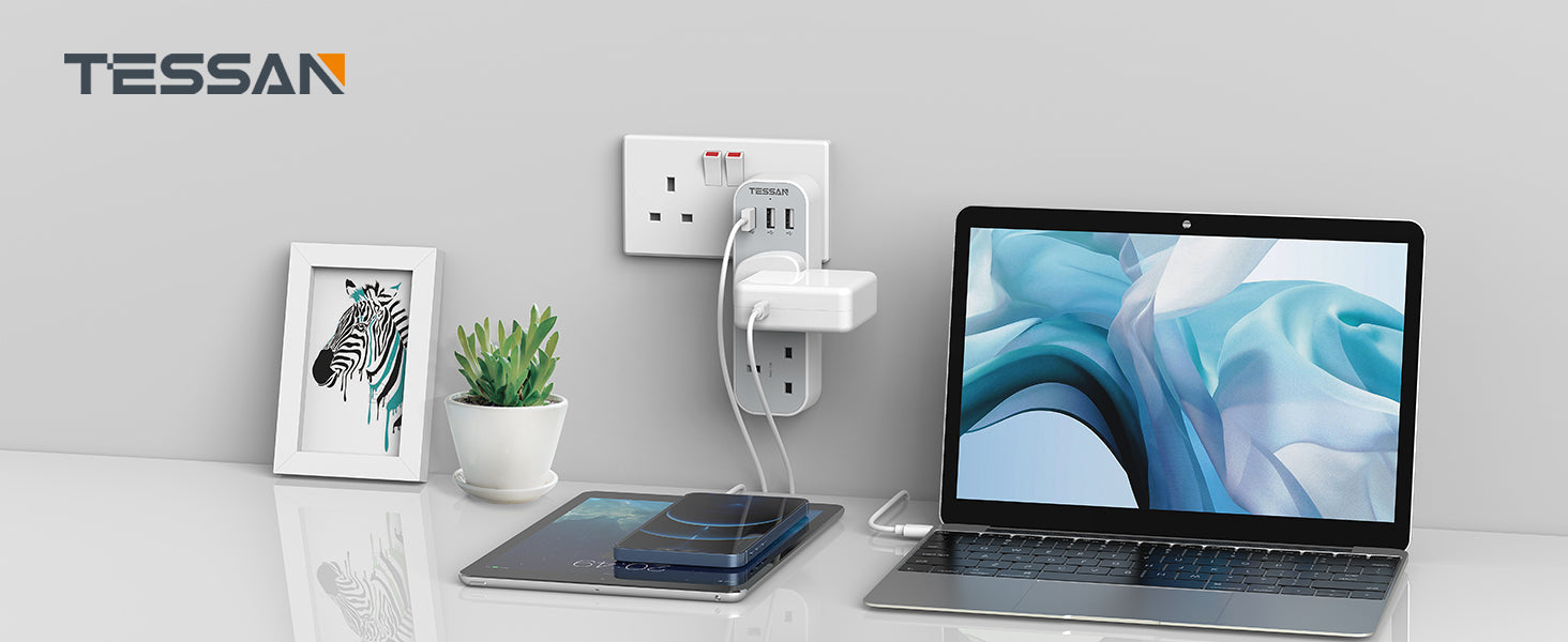 TESSAN Vertical Multi Plug Socket Extension is the perfect solution for all your charging needs. With its double plug adapter , 2 USB and 1 Type C Slot , you can easily charge multiple devices simultaneously. Stay organized and efficient with this space-saving device.