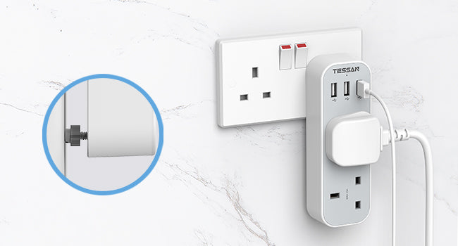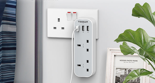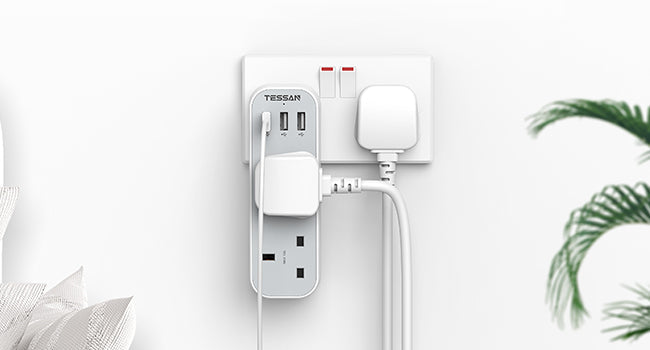 TESSAN Vertical Multi Plug Socket Extension is the perfect solution for all your charging needs. With its double plug adapter , 2 USB and 1 Type C Slot , you can easily charge multiple devices simultaneously. Stay organized and efficient with this space-saving device.