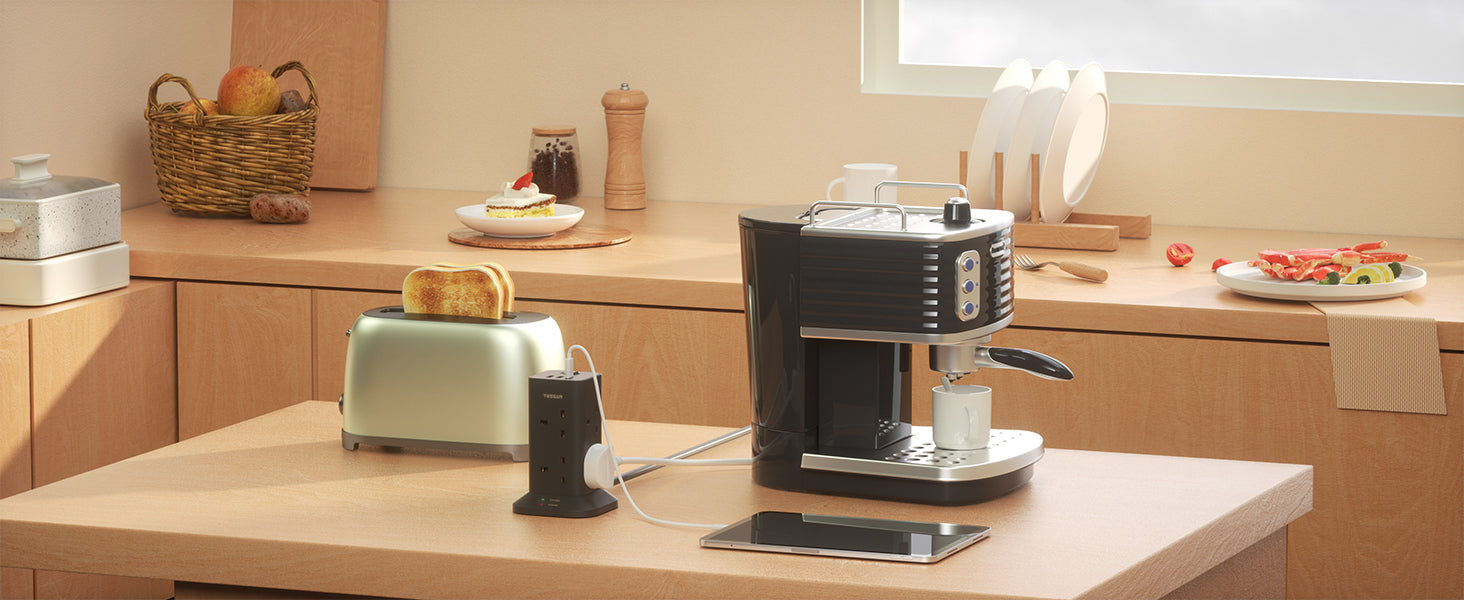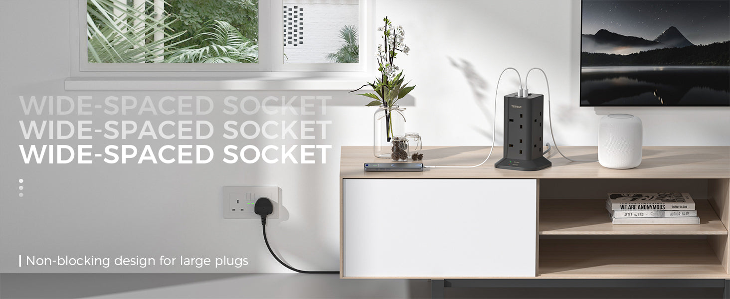 Increase your power access using TESSAN Black Power Strip Tower. This tower features 8 AC outlets, 2 USB-A ports, and 1 USB-C port, providing a total of 11 ways to charge your devices. Save space and declutter while simultaneously charging multiple devices.