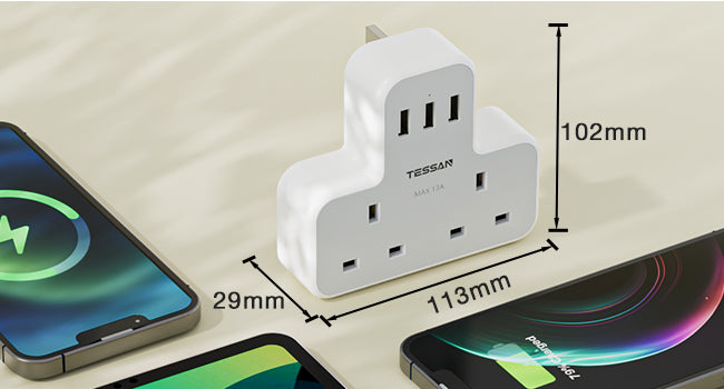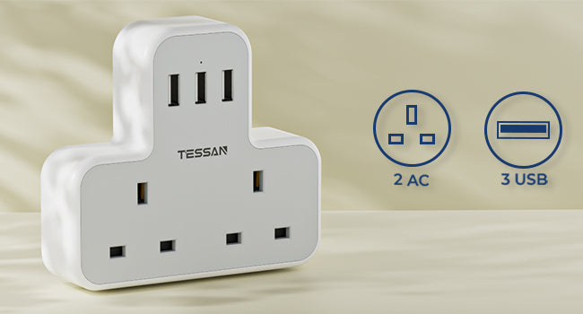 TESSAN Multi Plug Wall Adapter provides 2 AC outlets, 1 USB C, and 2 USB ports for all your charging needs. With its compact size and versatile design, it's perfect for any room in your home or office. Enjoy fast and efficient charging with this essential accessory.