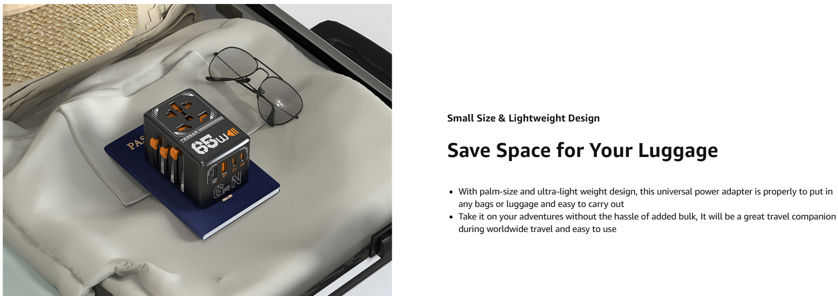 Universal 65W International Travel Adaptor with 2 USB C & 2 USB A Charging Ports