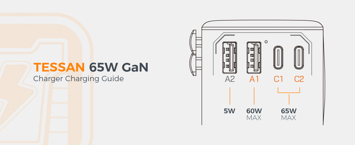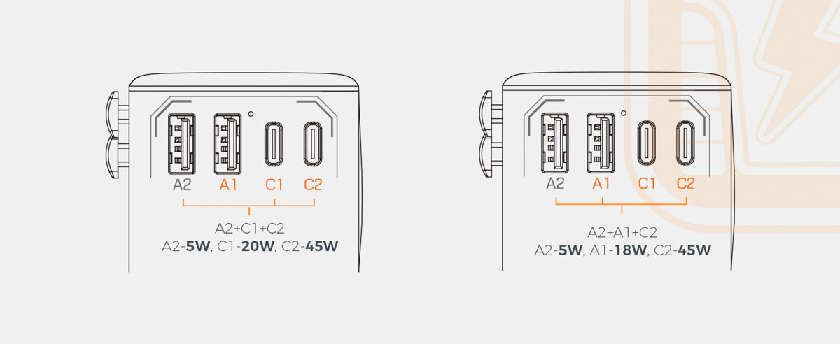 USB-A1 Output: 60W MAX; USB-A2 Output: 5W